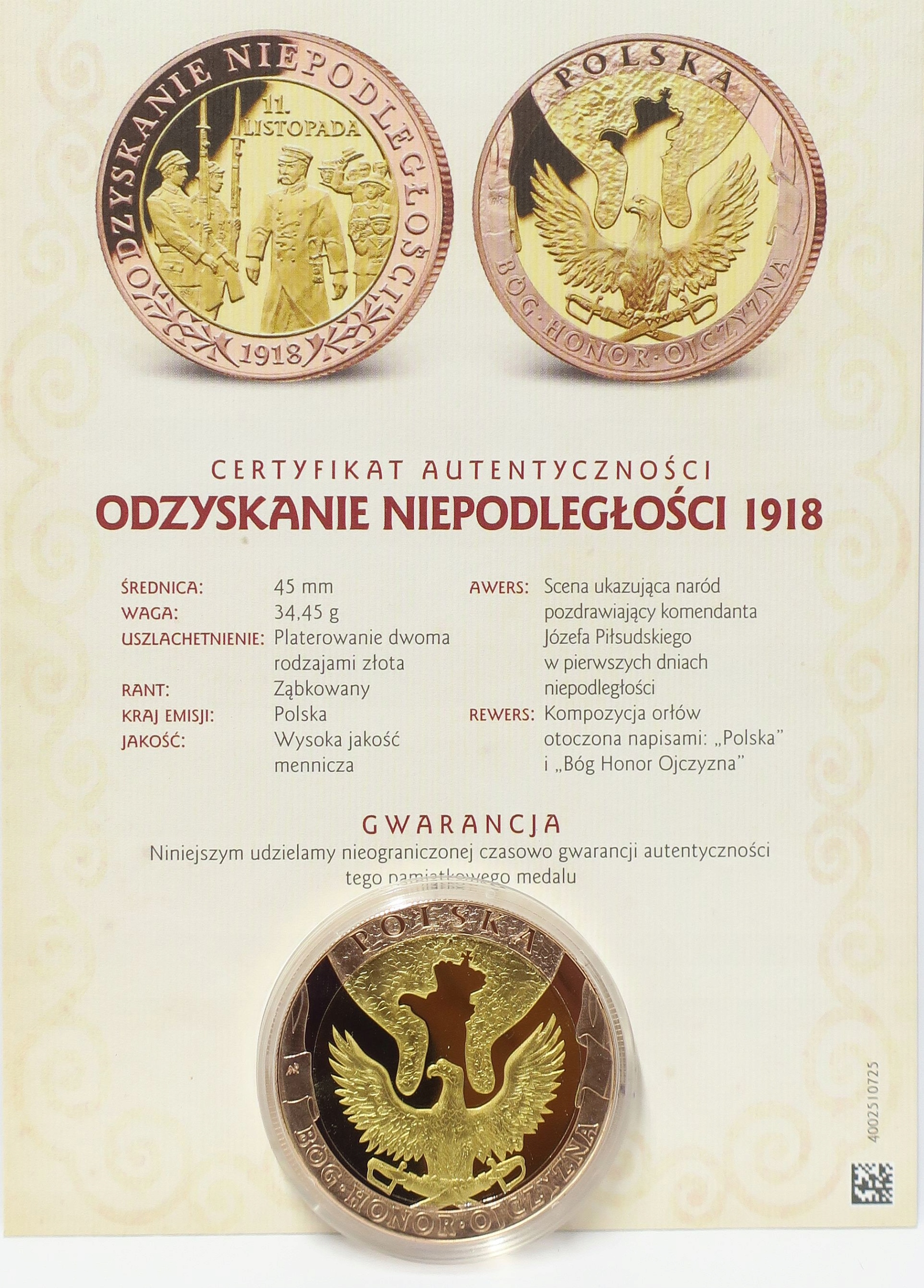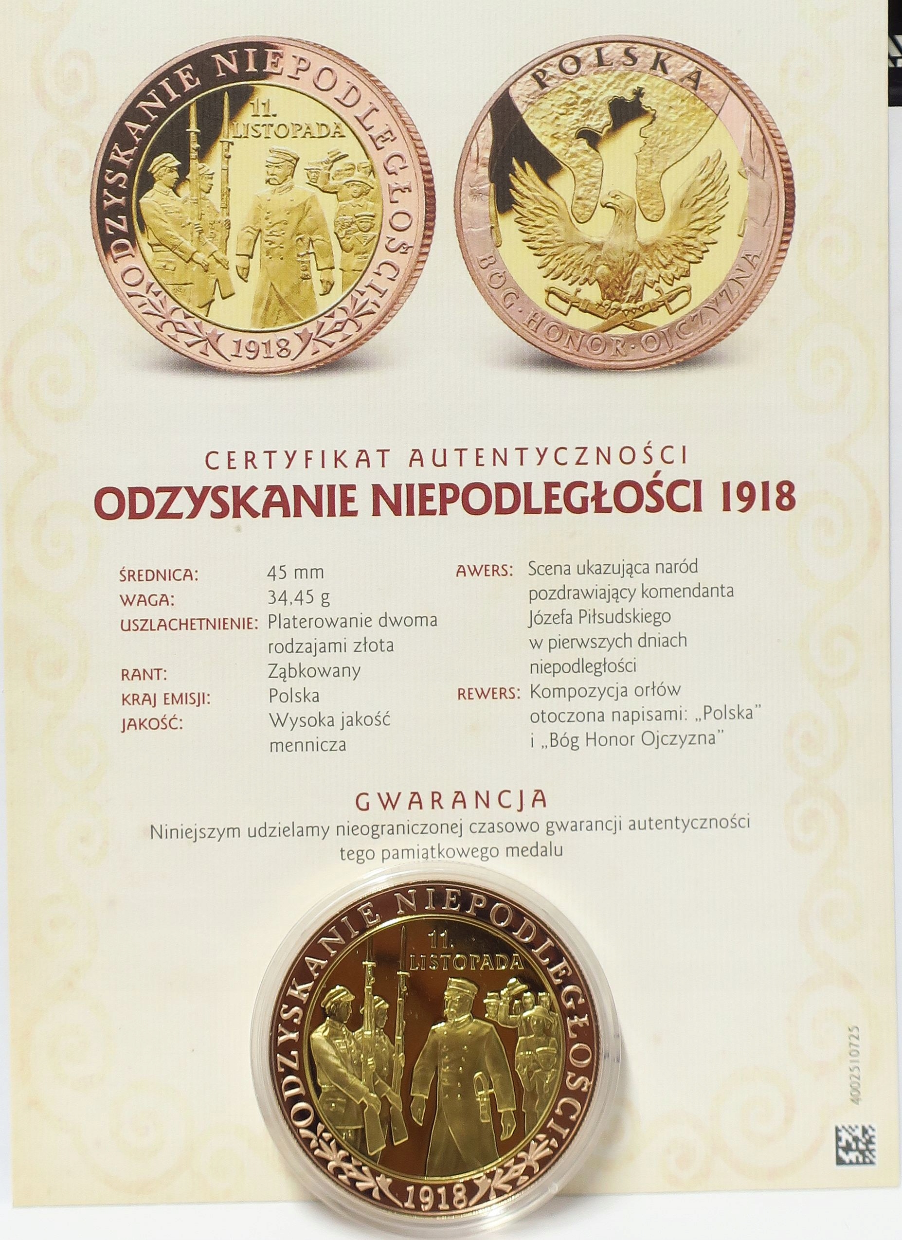BÓG HONOR OJCZYZNA ODZYSKANIE NIEPODLEGŁOŚCI 1918 + CERTYFIKAT
