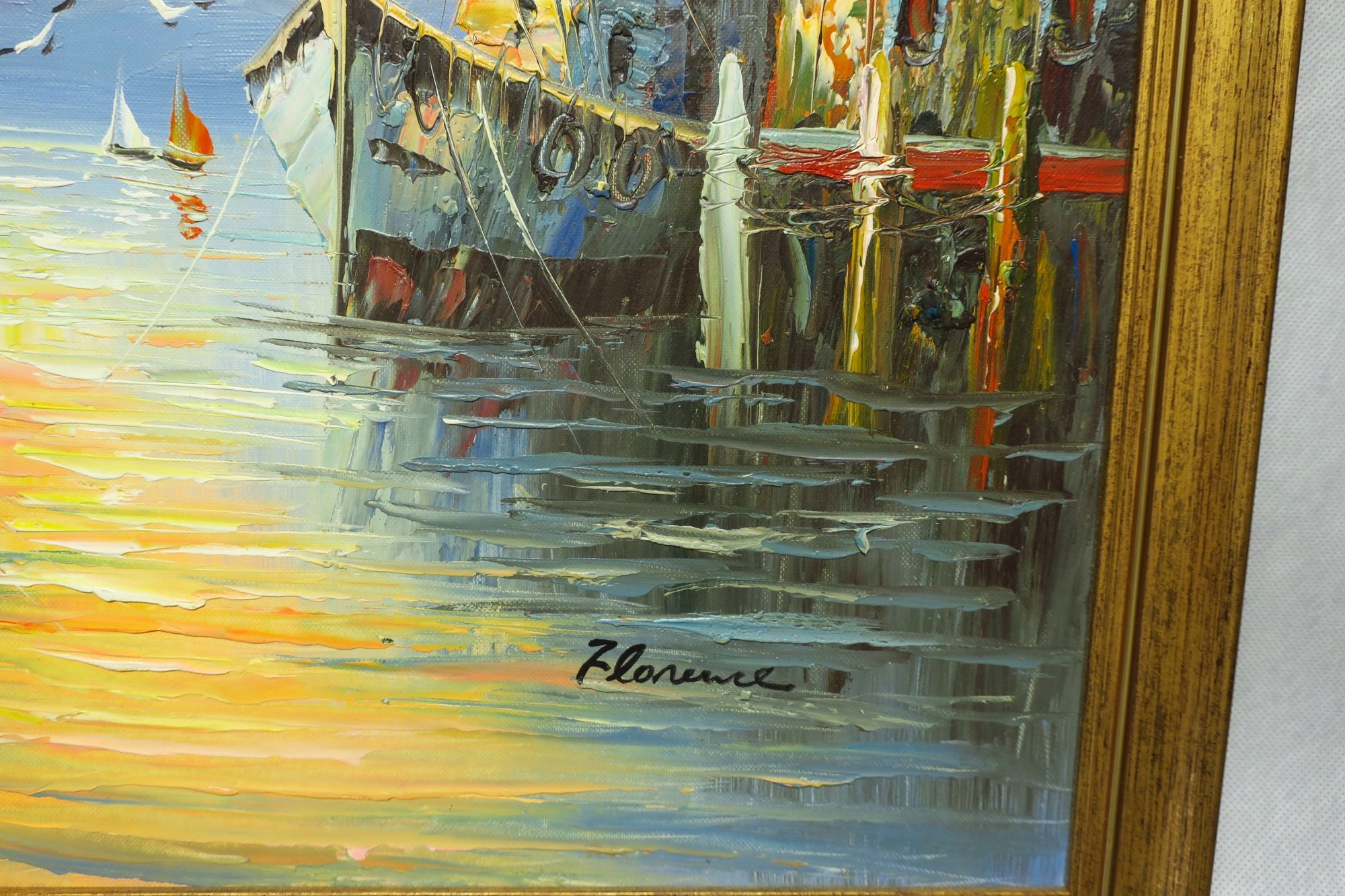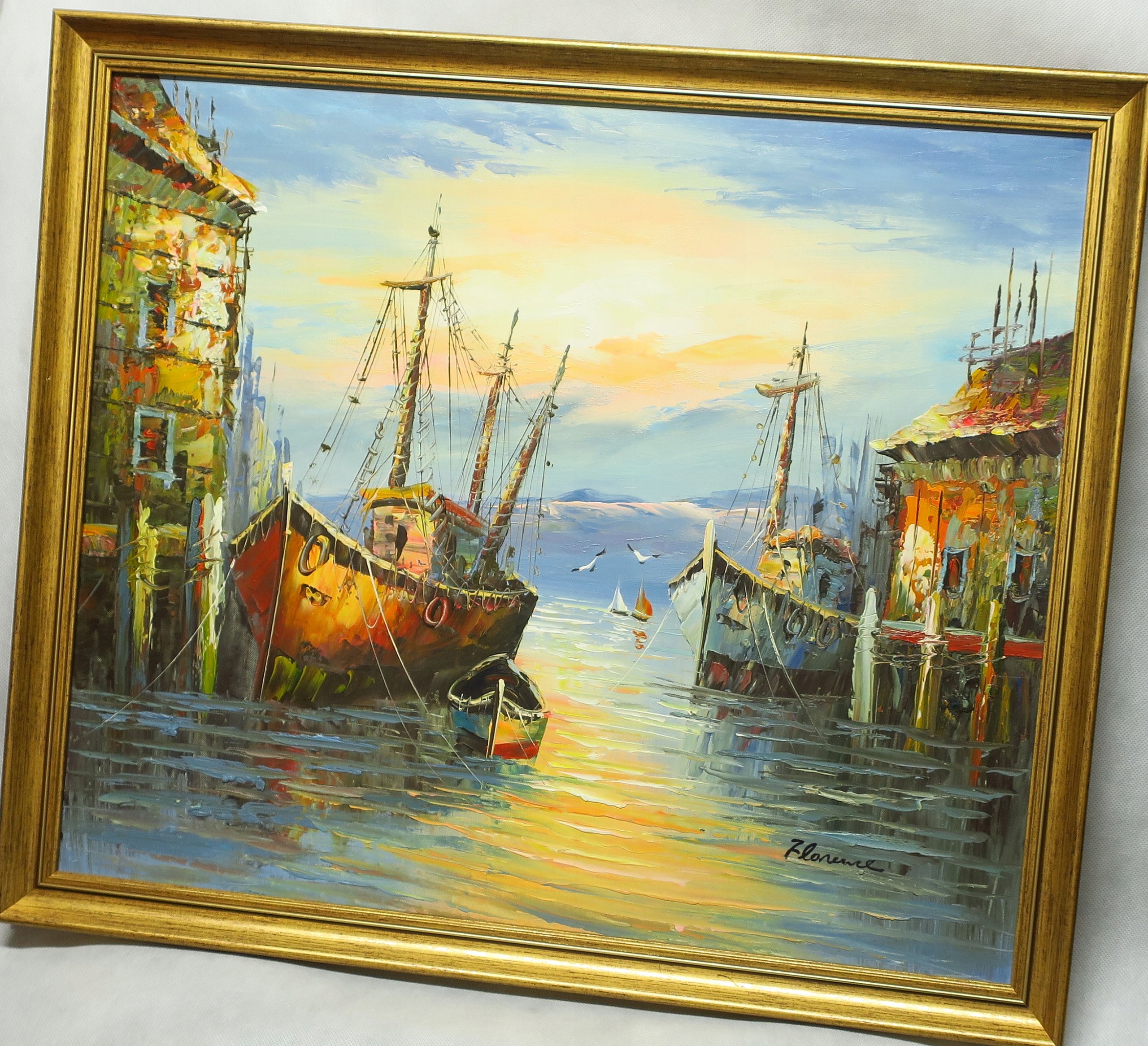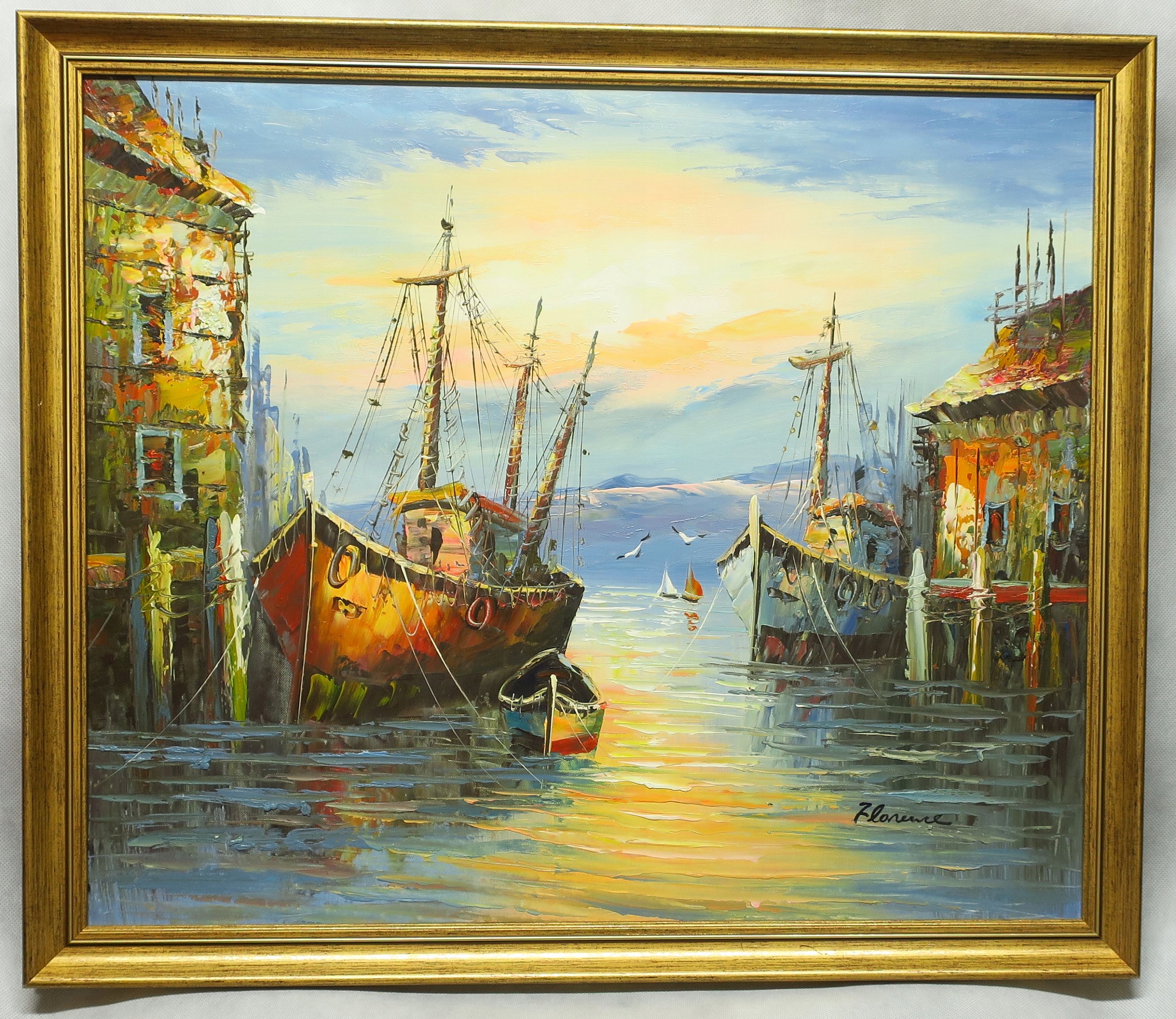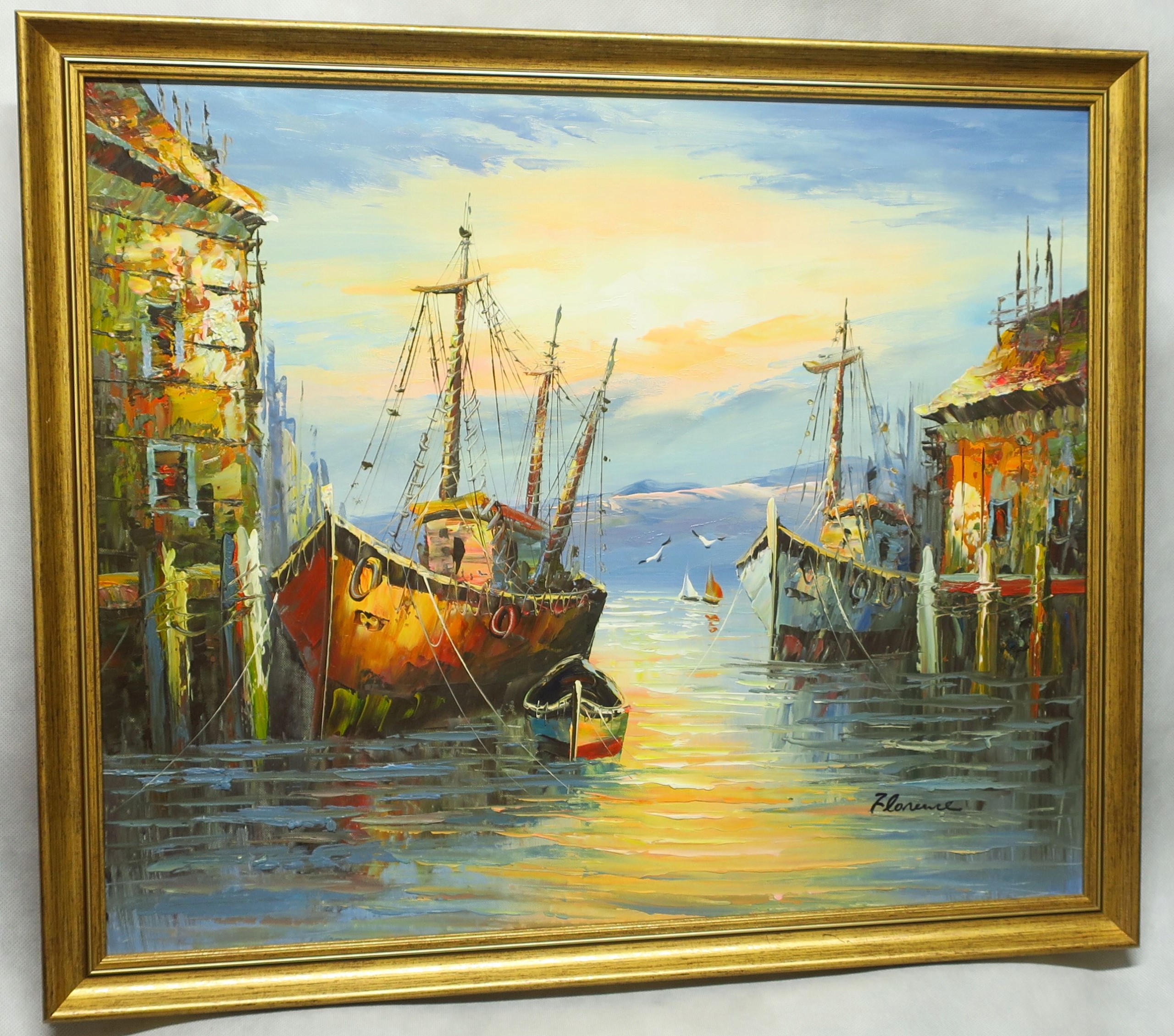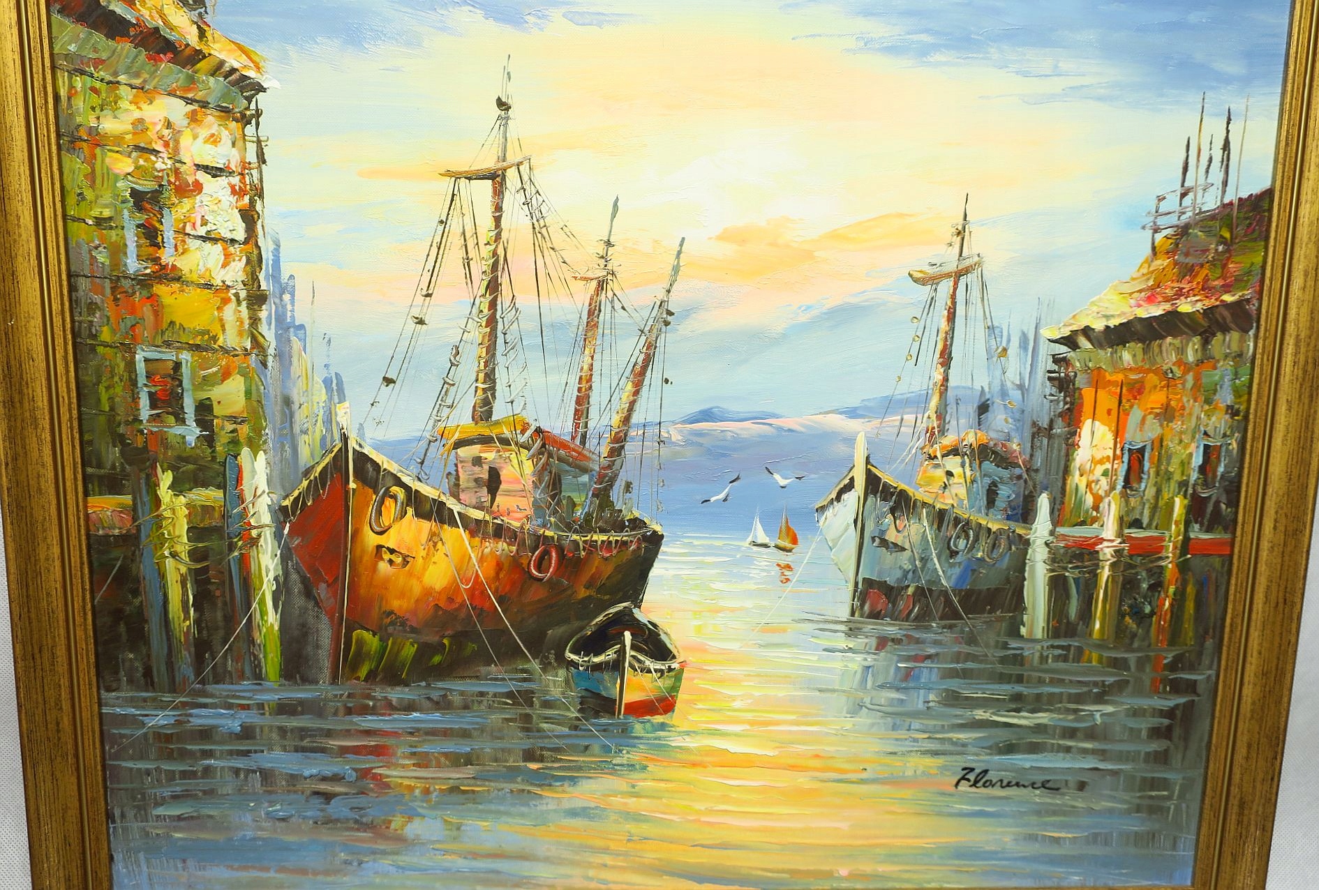 MARYNISTYKA SKANDYNAWIA ŁODZIE W PORCIE MORZE 52 x 62 CM