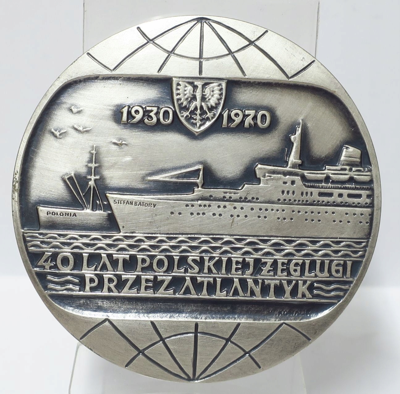 MEDAL 40 LAT POLSKIEJ ŻEGLUGI PRZEZ ATLANTYK PLO GDYNIA 7 CM