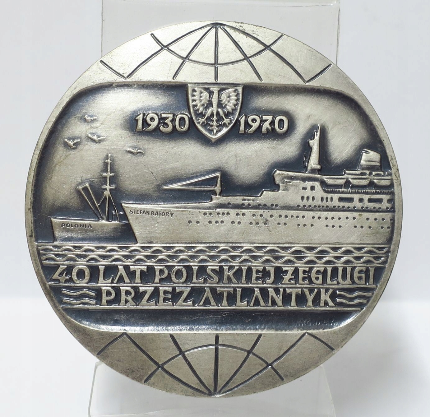 MEDAL 40 LAT POLSKIEJ ŻEGLUGI PRZEZ ATLANTYK PLO GDYNIA 7 CM